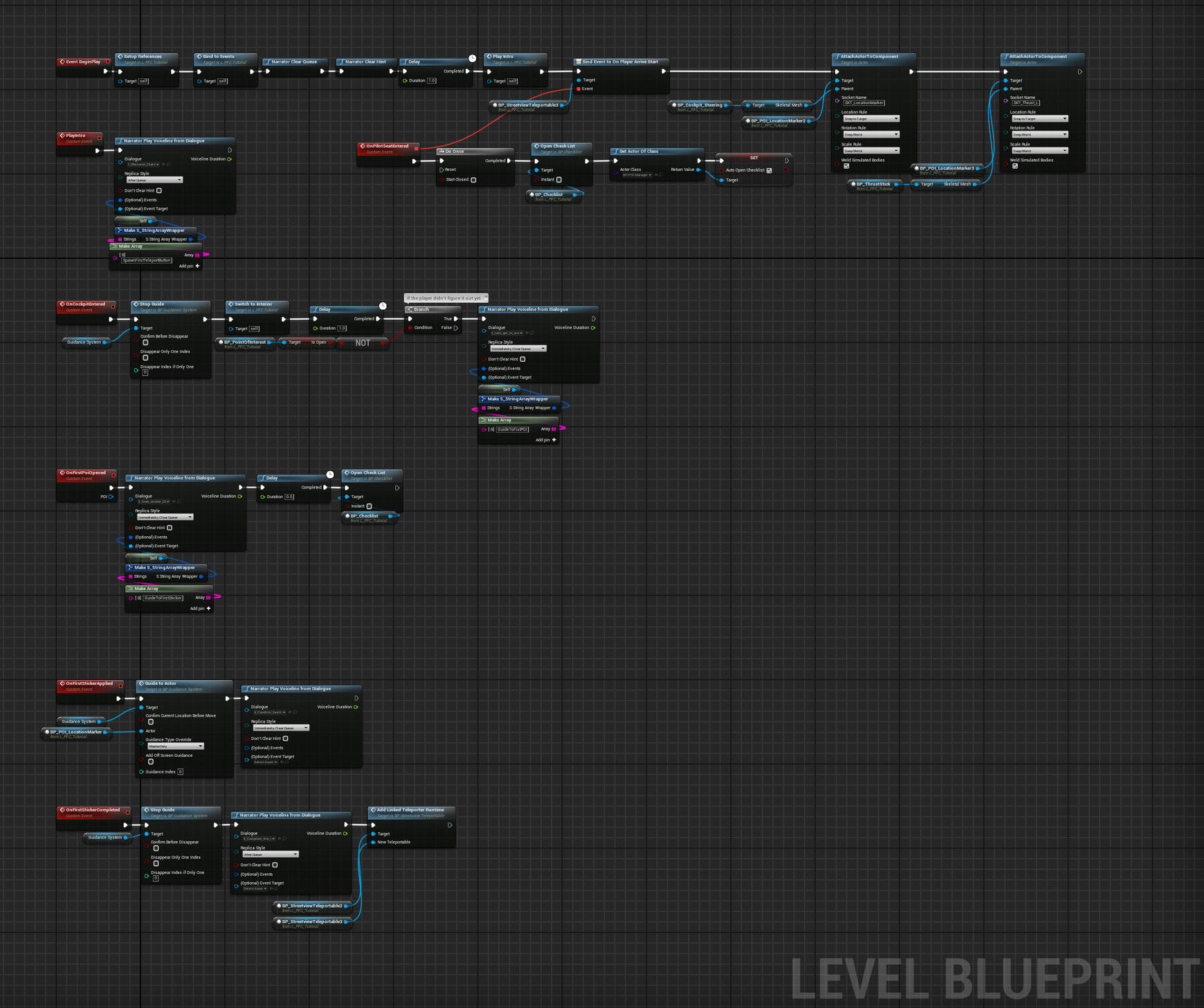 As the solo programmer on the project I also had to set up the rest of the project flow. From the main menu, to on-boarding, scene transitions and the end screen. These were mostly handled in the level blueprint and made use of our internal step system.
